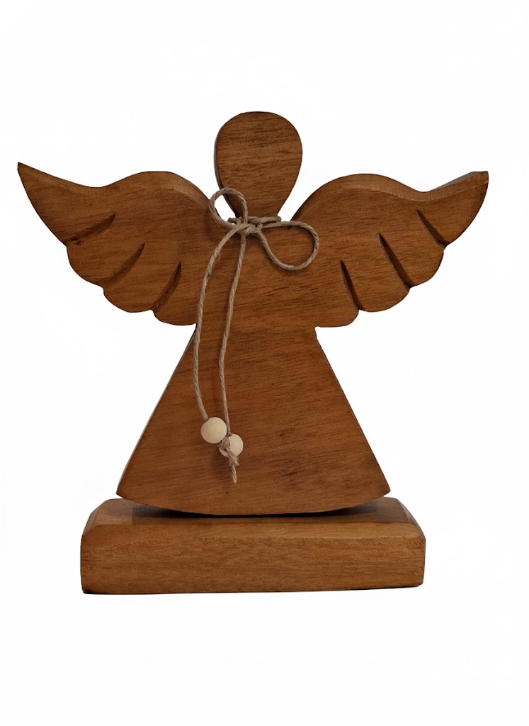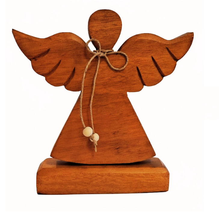 Surpreenda neste Natal com o charme e a pureza deste anjo de madeira — um símbolo de luz e proteção para o seu lar.