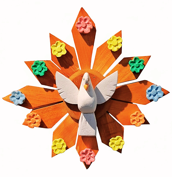 O acabamento do Divino é de primeira linha. As flores, o divino e o resplendor são entalhados, lixados e delicadamente pintados um a um. A peça possui um gancho simples atrás para ser pendurado. Informações adicionais Cada projeto é único, o que faz desse quadro uma peça exclusiva. É tudo feito com muito amor e muita dedicação. Não é por acaso que o artesanato mineiro já é referência nacional e a cada dia tem alcançado um maior número de pessoas apaixonadas pelo trabalho manual de qualidade, feito para ser visto como uma verdadeira obra de arte.
